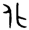 化,甲骨文 =(一个头朝上站立的"人")+(一个头朝下的"人"),表示两人變位。造字本义:變化。金文将甲骨文中头朝下的"人" 写成"匕"。篆文承续金文字形。